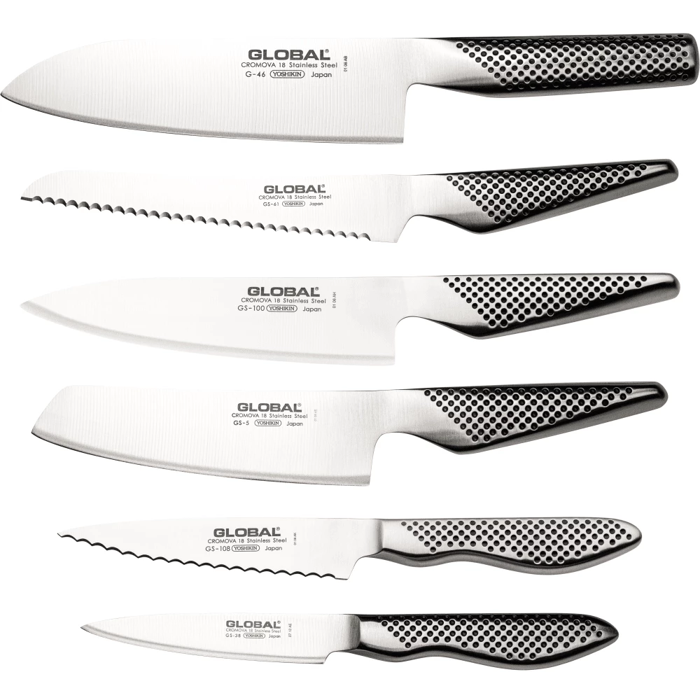 Our Global Tsuchi sets stand proud a firm, like a rock with a sloping universal block holding knives firmly in place.