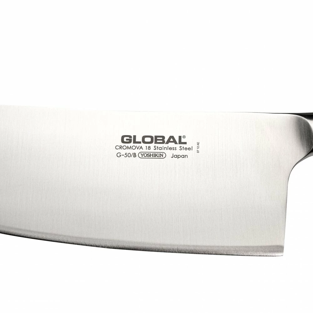 The G-49 17.5cm and the G-50 20cm are both Chinese chef’s knives, whilst they look like cleavers, they are not suitable for this task. These rectangular knives, referred to in Chinese as Caidao are multipurpose knives. Chinese people and chef’s will use these knives in the same way that Western chef’s will use Western style chef’s knives, such as the G-2. These knives will be typically used to prepare all kinds of meat and fish. In fact it is typically the ONLY knife that a Chinese chef will use. Whilst the Chinese chef’s knife resembles a cleaver, it does in fact have a sharp thin blade like a standard G series knife. The G-49 is a typical Chinese Caidao with a 2.2mm thick blade and if used as a cleaver, the blade will usually get damaged. Different parts of the blade are used for different tasks with the front of the blade used for a tapping cutting stroke, the middle and back of the knife for heavier chopping work. Whilst it may seem awkward those skilled with a Chinese blade can use them for any kitchen task.