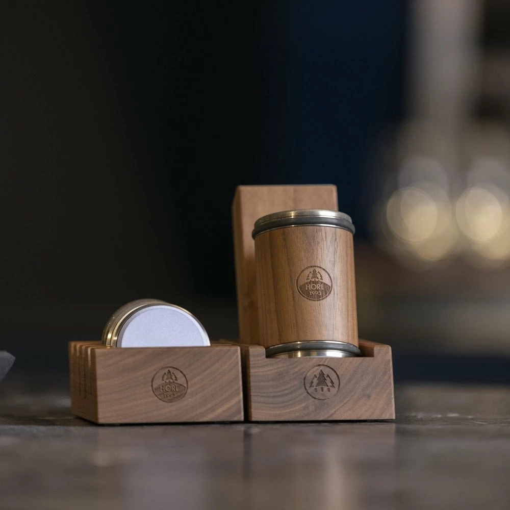 Keep your Horl2 Accessories organised with the Horl grinding disc station in a matching material to your Horl2 Sharpening system.