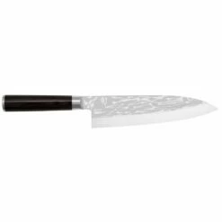 The Shun Pro Sho Series focuses exclusively on single-edged and thus traditionally Japanese blade shapes. Thanks to extremely high manufacturing standards and corrosion-resistant blade steels, this series is particularly suitable for continuous professional use. The knife’s elegant design combines classic Japanese form with contemporary features in a sublime fashion. Their blades embossed with an elaborate ornamental pattern, created using an innovative manufacturing process, form the knives’ visual highlight. As in the Shun Classic Series, the elegantly shaped and functional pakkawood handle stands in stark contrast to the blade’s opulent patterns.