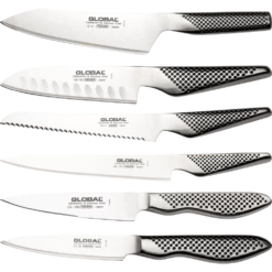 The Santoku and Chef’s Knife are both flutted which is great for cutting vegetables as it stops them from sticking to the blades