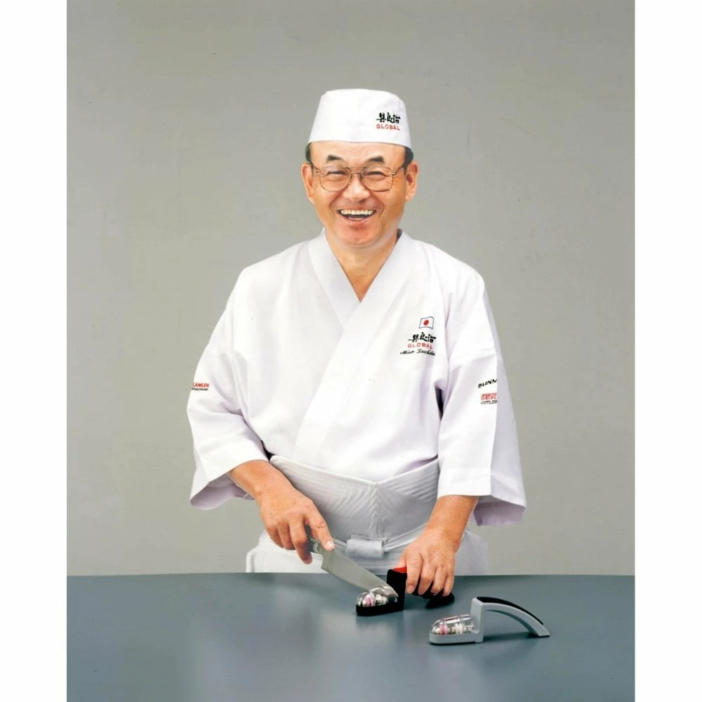 Small and easy to use sharpeners for your knives. There are two wheels, rough and medium to put a new edge on your knife. Simply fill the container with water and run your knives back and forth through the slots applying moderate pressure.