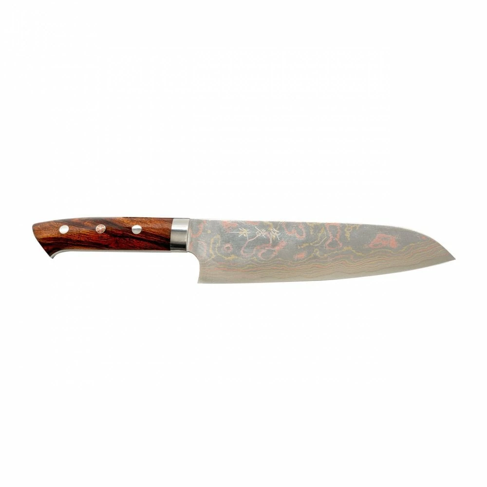 Takeshi Saji Takeshi Saji Rainbow Damascus 18cm Santoku Knife With Ironwood Handle